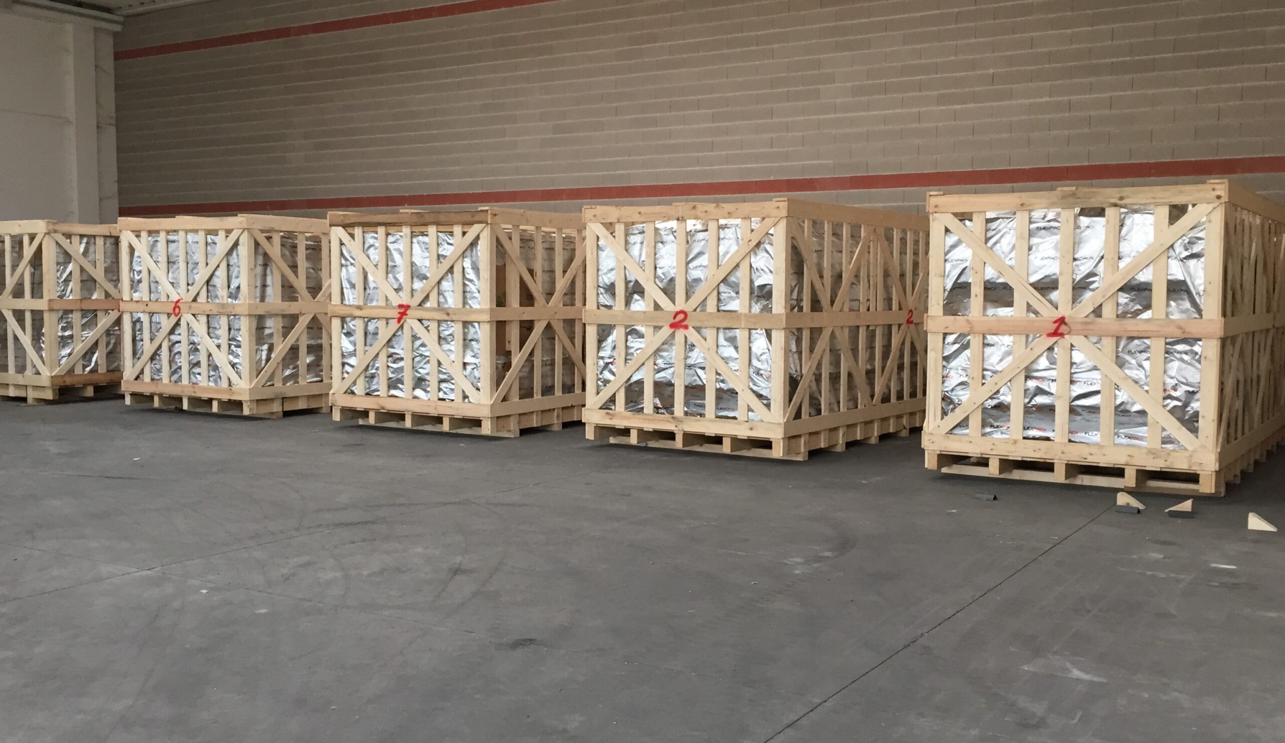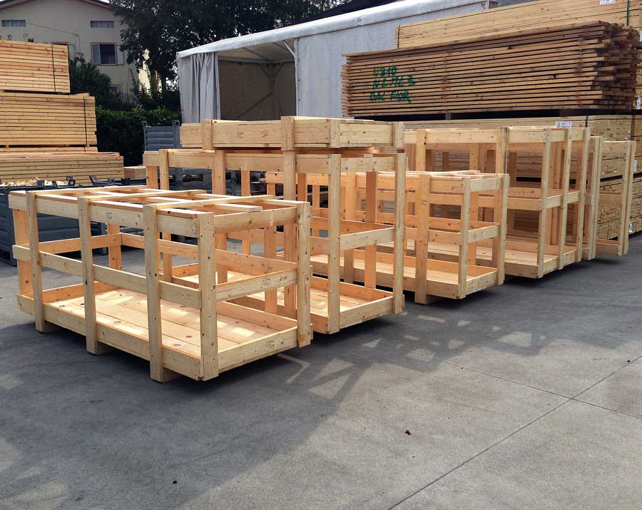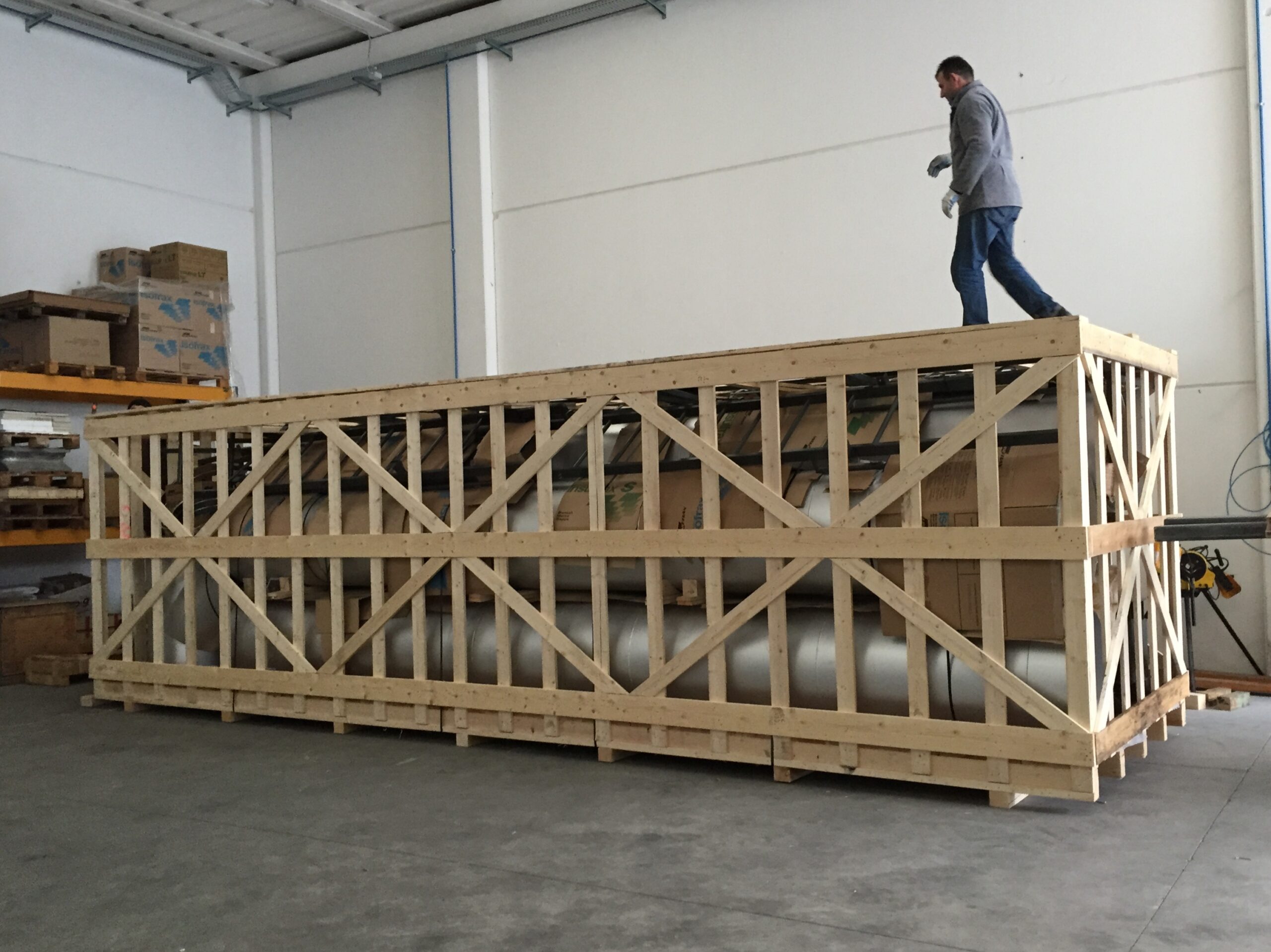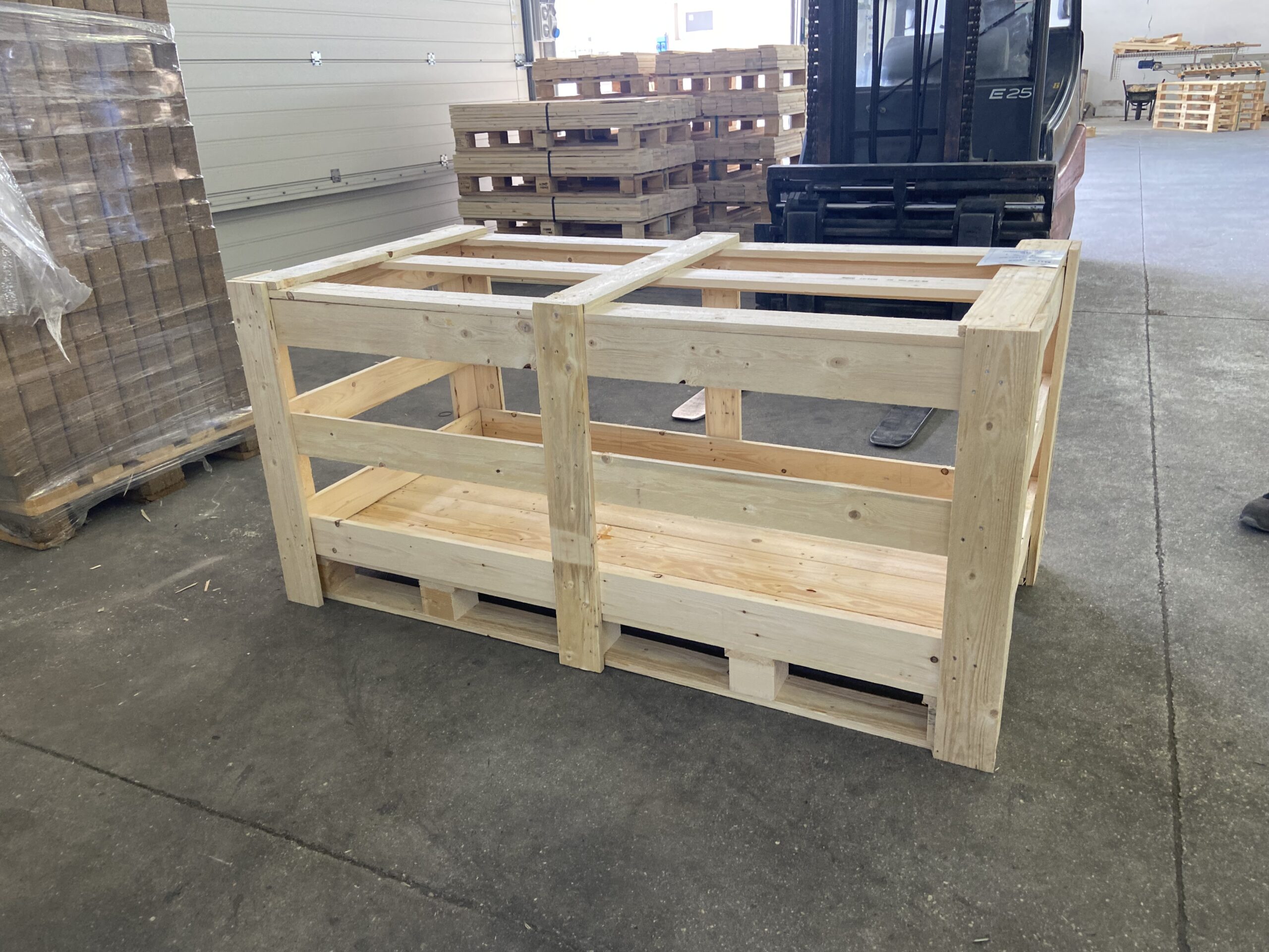 Le gabbie vengono costruite sempre su misura e con tavole in abete alternate, con spaziature in base alle esigenze del contenuto. Possono essere marchiate FITOK e costruite in vari formati e dimensioni.